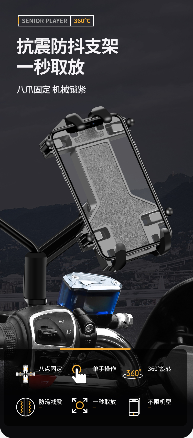 商品名称:魔轮(Move iron)电动车手机架摩托车外卖快递八爪固定手机支架踏板电瓶车导航支架骑行配件 后视镜款