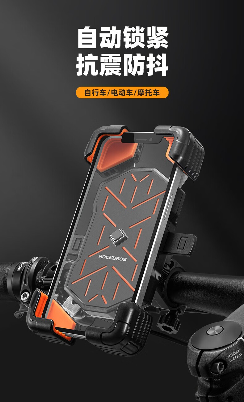 洛克兄弟电动车手机机支架摩托车外卖代驾导航防震自行车手机支架 车把款-黑色